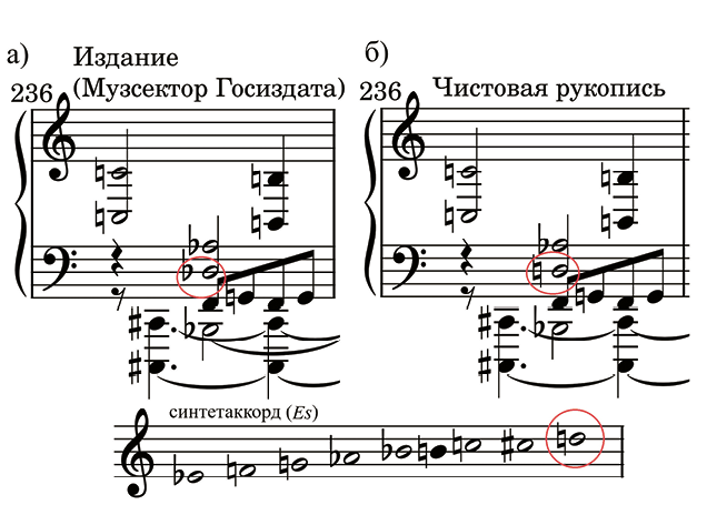Example 7a, b. N. Roslavets. Piano Sonata No. 5, measure 236